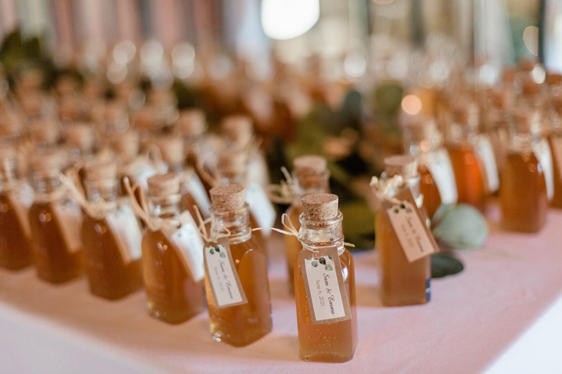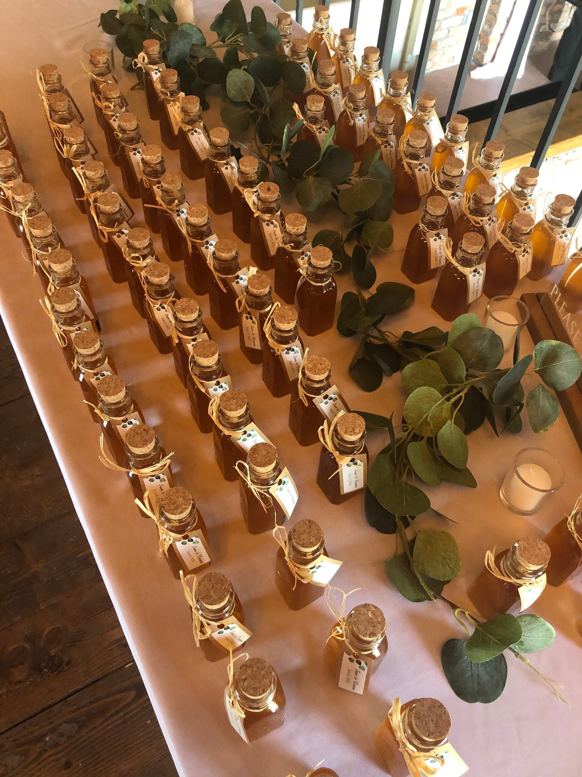 4oz raw wildflower honey in a beautiful vintage looking muth glass bottle. Our New York honey is raw, never pasteurized, and unfiltered so it retains all the vitamins, minerals, enzymes, and antibacterial properties that raw honey is known for. If you need more favors then what I have listed let me know.