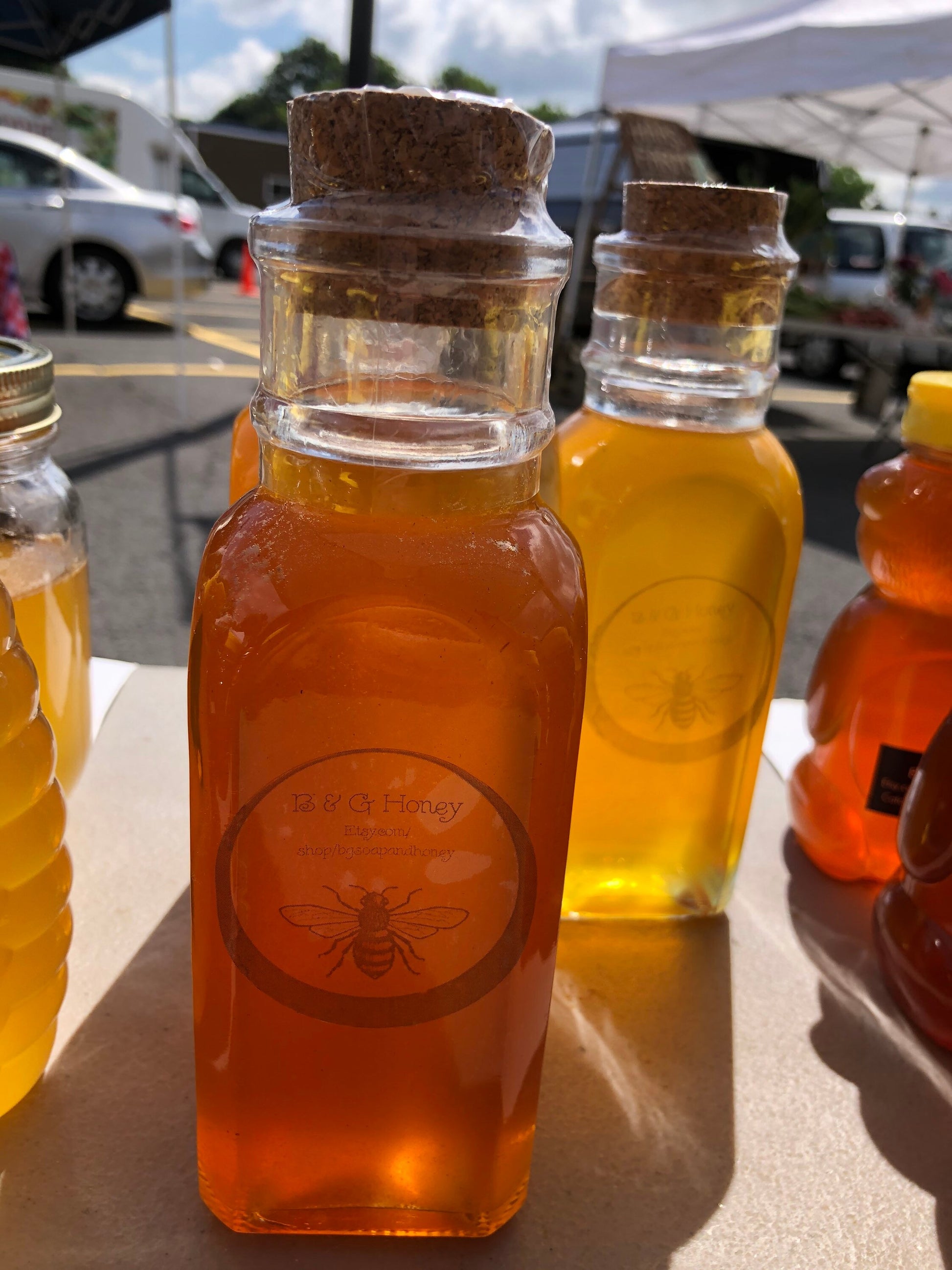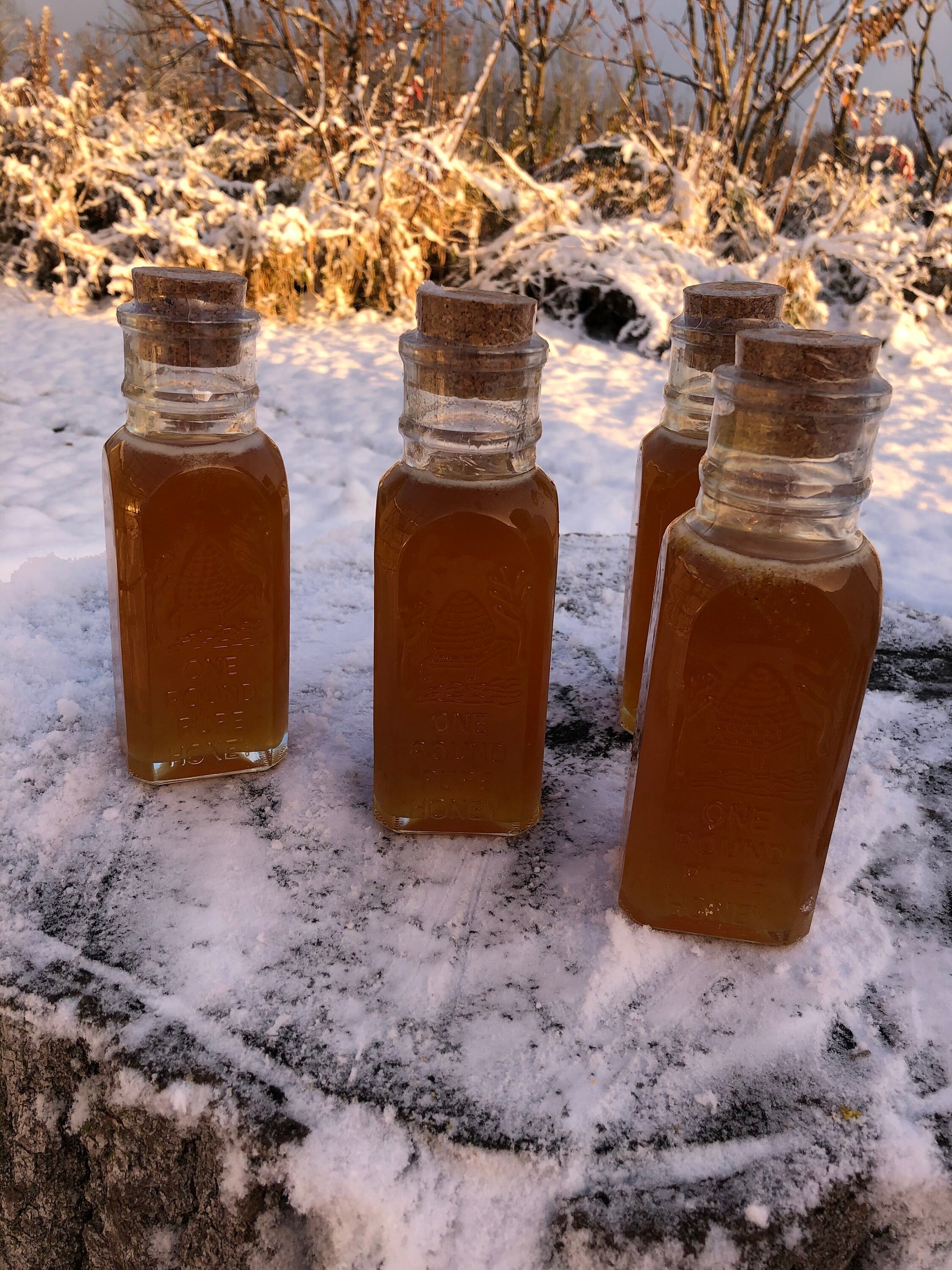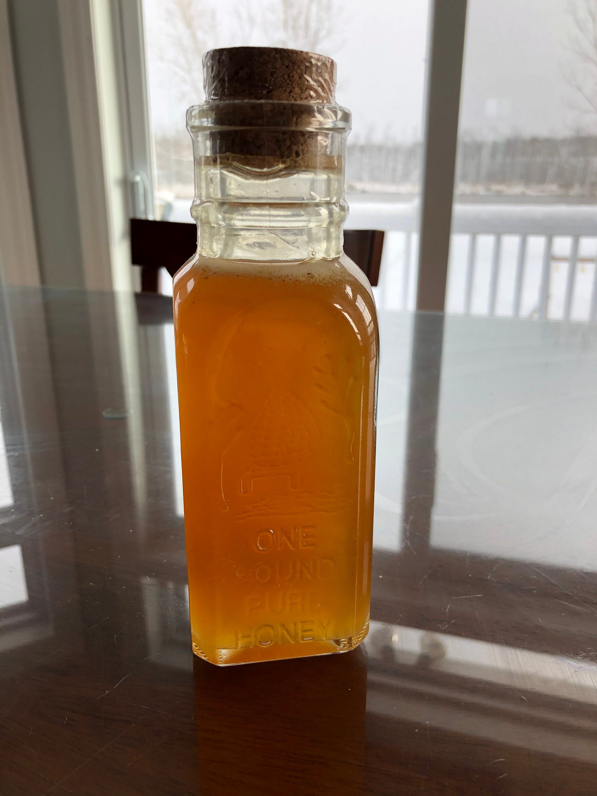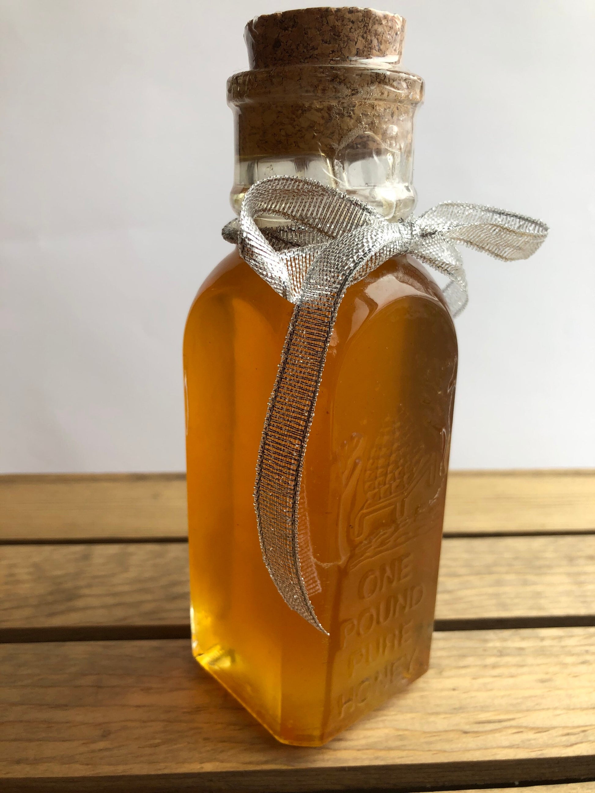 Materials: cork,glass muth jar,raw wildflower honey