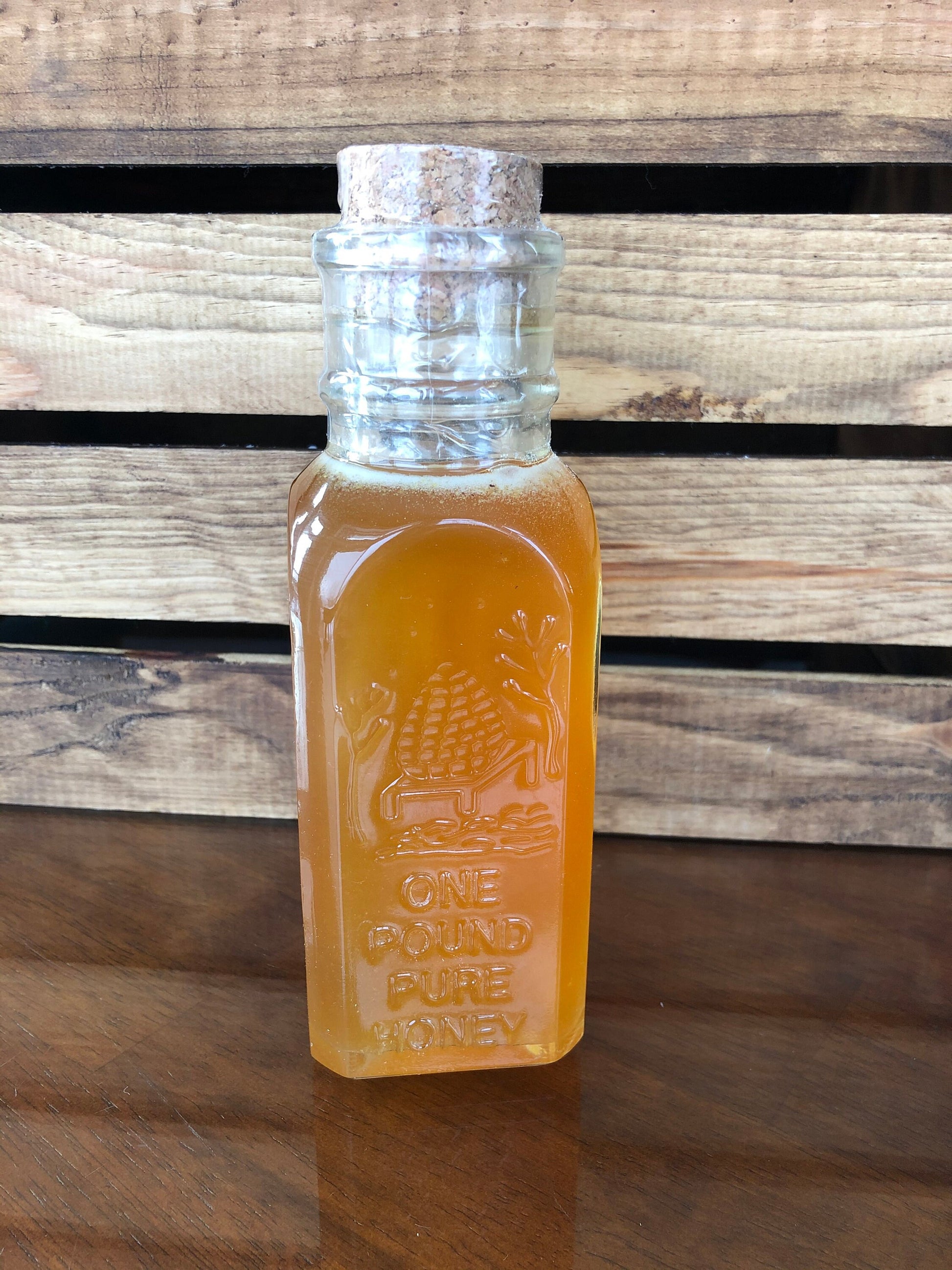 Muth Glass Honey Bottle 1lb- 1lb Honey- 16oz Honey- Vintage looking Muth Honey Bottle- Raw Honey- Raw Wildflower Honey- New York Honey