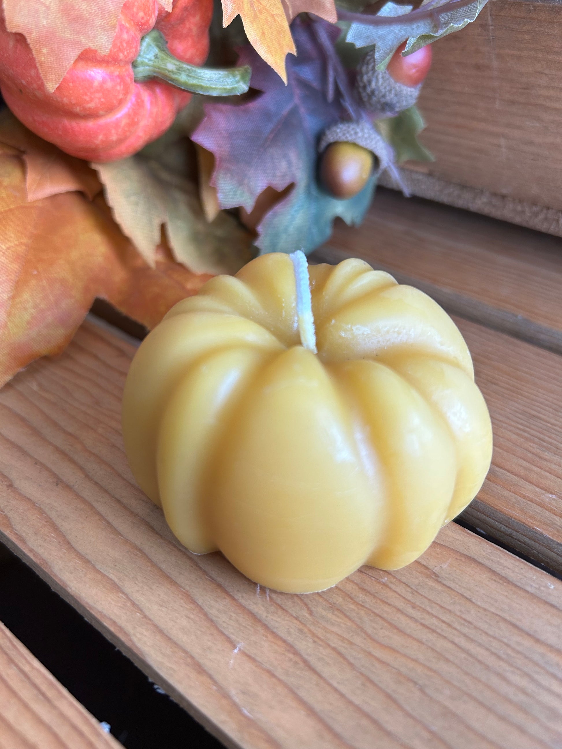 Small Beeswax Pumpkin Candle - 2.5” wide x 1.75” tall