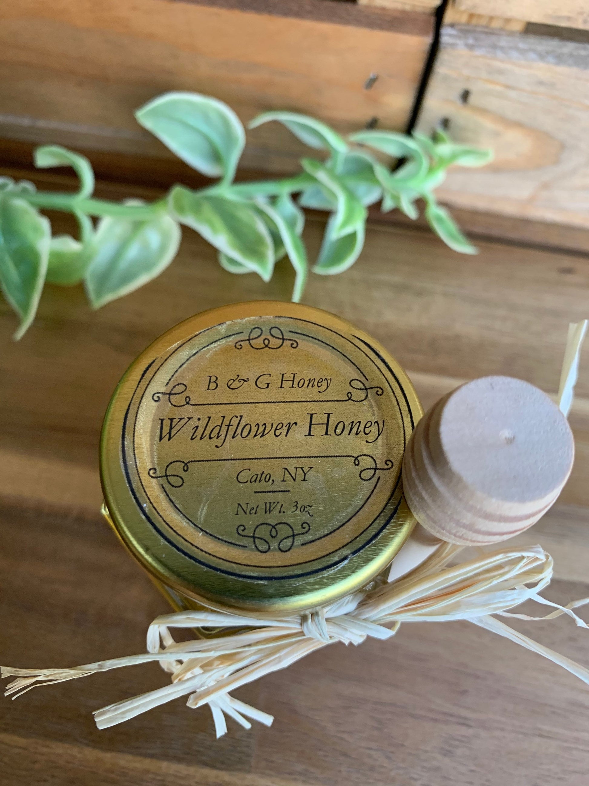 Materials: wooden honey dipper,raw wildflower honey